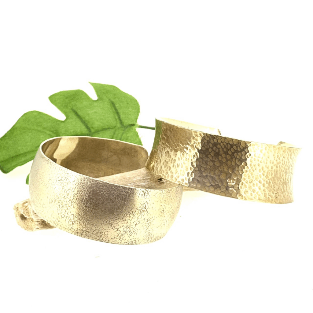 和黄銅と言う伝統工芸で使う黄色が鮮やかな真鍮でプロが使う専用工具を使い幅広いバングルをつくります